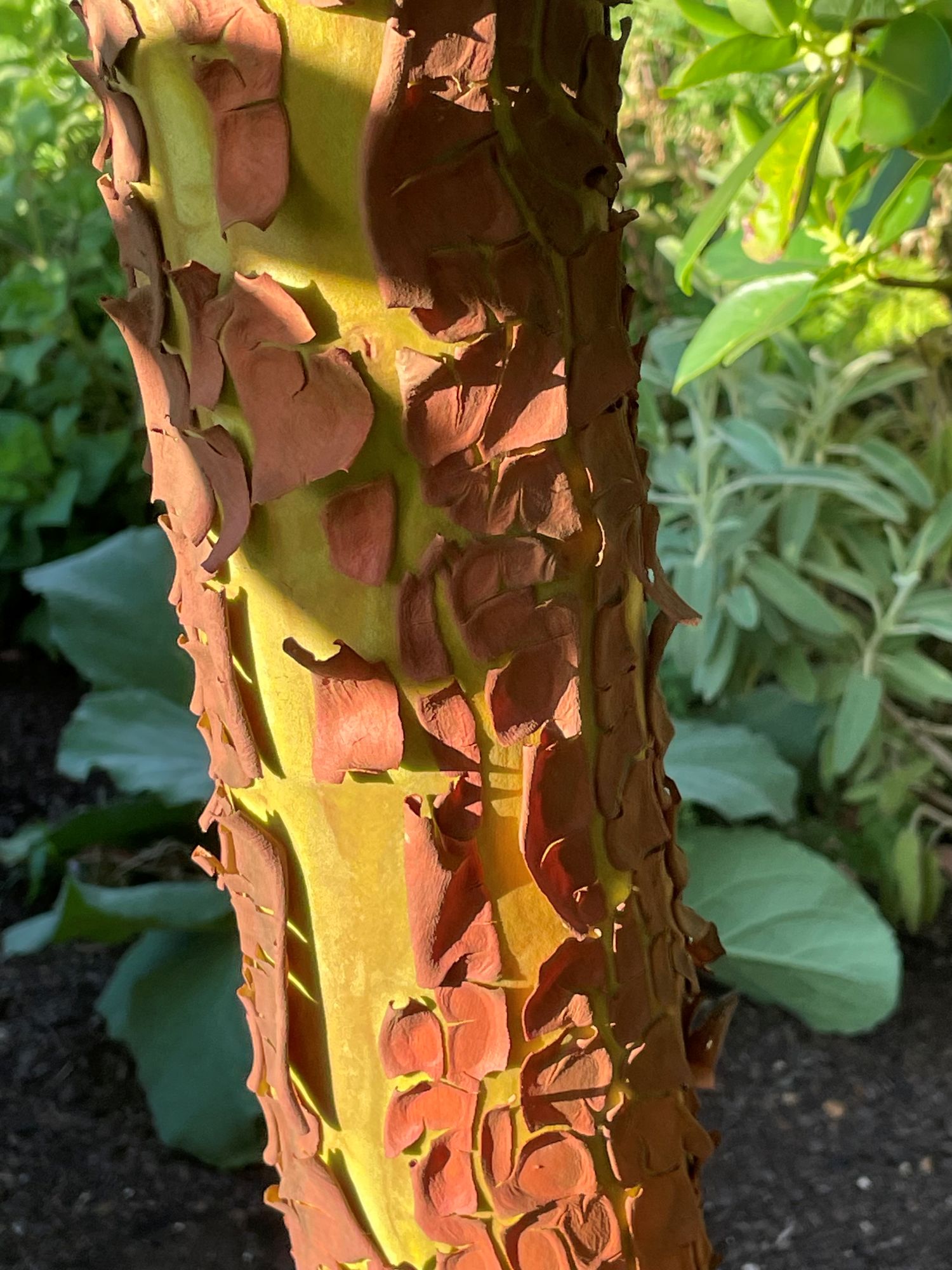 Arbutus menziesii’s extraordinarily beautiful, exfoliating bark.