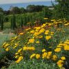 When Criss and I were on a pre-Covid trip to England, we went to the RHS gardens at Wisley. The Achillea trials were being held in Portsmouth Field next to M25. The roar of the traffic was so awful that we nearly turned back before we got to the trials. We pressed on, thank goodness, because we saw that Achillea ‘Credo’, a variety raised by the great German nurseryman, Ernst Pagels, was one of the best plants there. We imported it soon after. ‘Credo’ carries 12cm wide, flat heads of flowers for a long period during late spring and summer and if cut back to the ground after the is first flush has finished will reward with a second blooming. 100cm x 60cm.