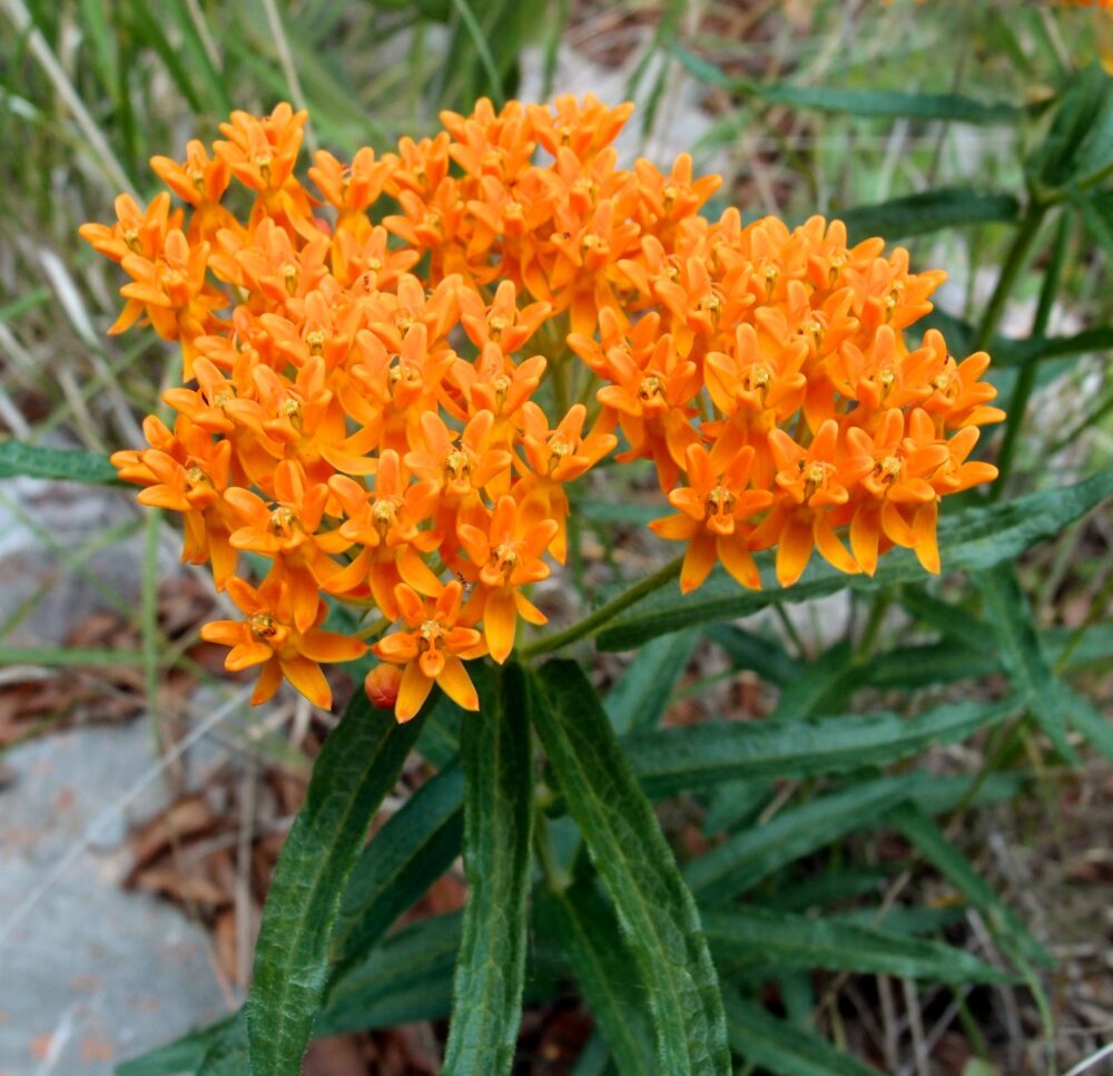 Bright orange, flat topped flower heads, 10cm or more across, are carried on 45cm tall leafy stems for much of the summer. The flowers are followed by attractive green seed pods. The Butterfly Milkweed attracts many species of butterfly as well as native and honey bees. 45cm tall by 30cm wide. Best grown in full sun this species is fairly drought tolerant when once established.