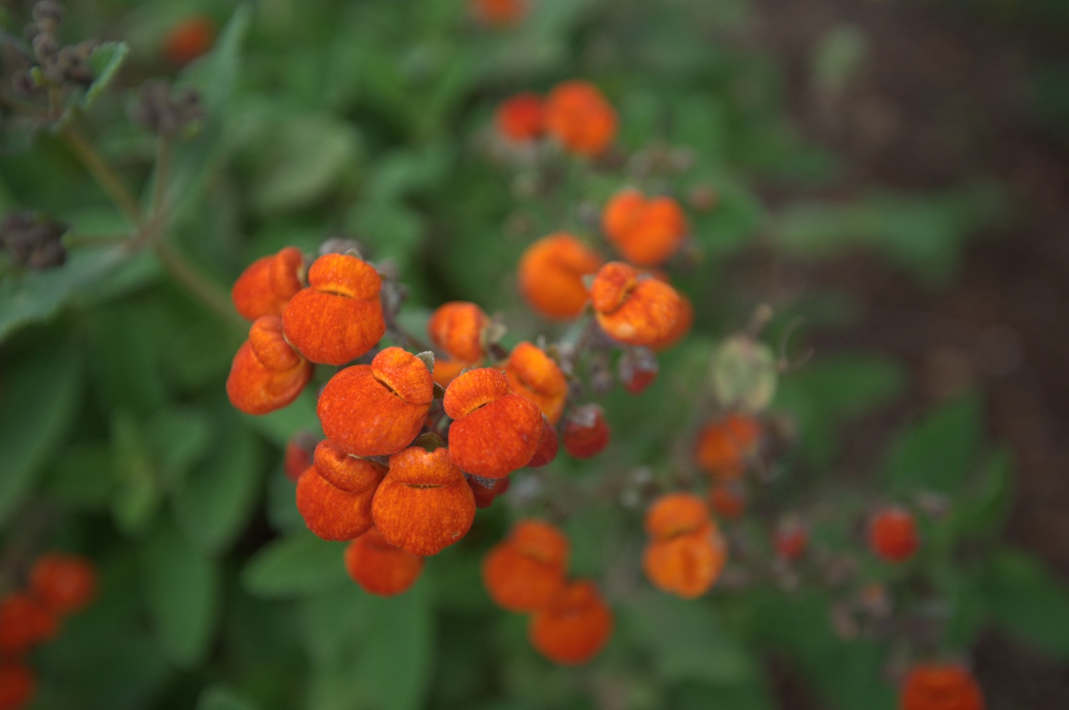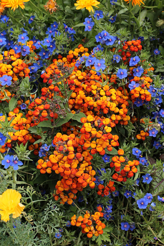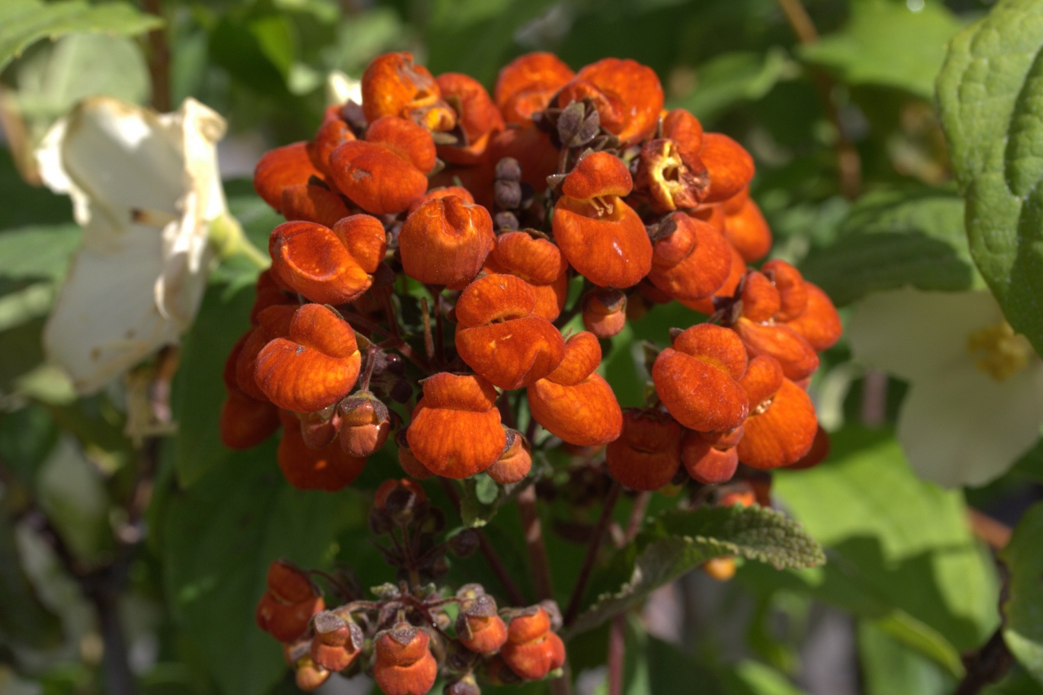 Whilst this RHS Award of Garden Merit plant looks as though it would be happier in a conservatory than in the garden it is both hardy to the frosts of winter and the heat of summer. Making an evergreen shrub clothed with crinkled, dark green leaves itcarries many flowered heads of russet-orange, pouch-like flowers for months from late spring until autumn. ‘Kentish Hero’ grows happily in any sunny or lightly shaded spot as long as it gets extra irrigation during dry times. 40cm-50cm.