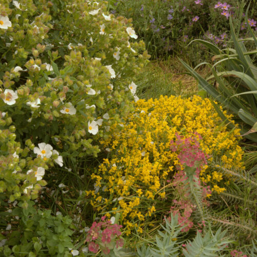 This attractive little shrub was named for a past director of the Kew Botanic Gardens and the author of Bean’s Trees and Shrubs Hardy in the British Isles. Small enough to grow in the rock garden and showy enough to be given pride of place in our dry climate garden, where every spring “…its semi prostrate mass of rounded twigs are strung for their length by pairs of flowers of dark yellow”. G.S. Thomas Ornamental Shrubs, Climbers and Bamboos. Long-lived and wanting nothing more than a well-drained spot in full sun. Whilst Lambley used to grow this in the Dandenongs we lost it in our move to Ascot. Ken Gillanders very kindly sent cuttings to us 15 years ago and this lovely little shrub has thrived in the same spot in the Lambley garden ever since where it has grown some 40cm tall by 70cm across.
