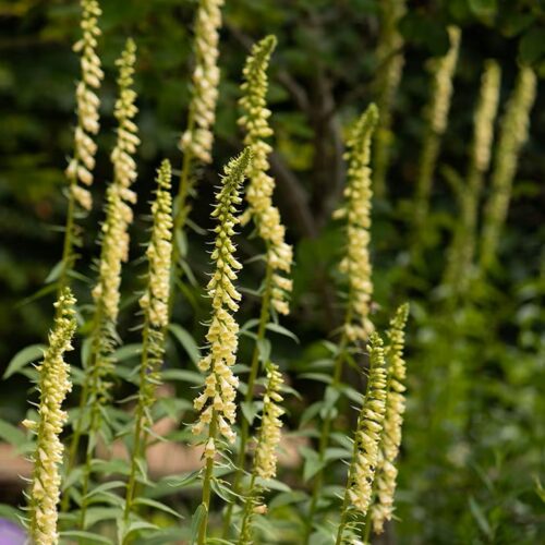 Such a beautiful plant this should find a spot in every garden. Coming as it does from southern Europe and north Africa it is somewhat more tolerant of drought than other foxgloves but does still like a bit of extra irrigation during dry periods. From a rosette of light green leaves a 70cm tall spike carries innumerable narrowly tubular soft lemon flowers. Unlike other fox gloves this is quite perennial. Happy in any sunny or lightly shaded spot.