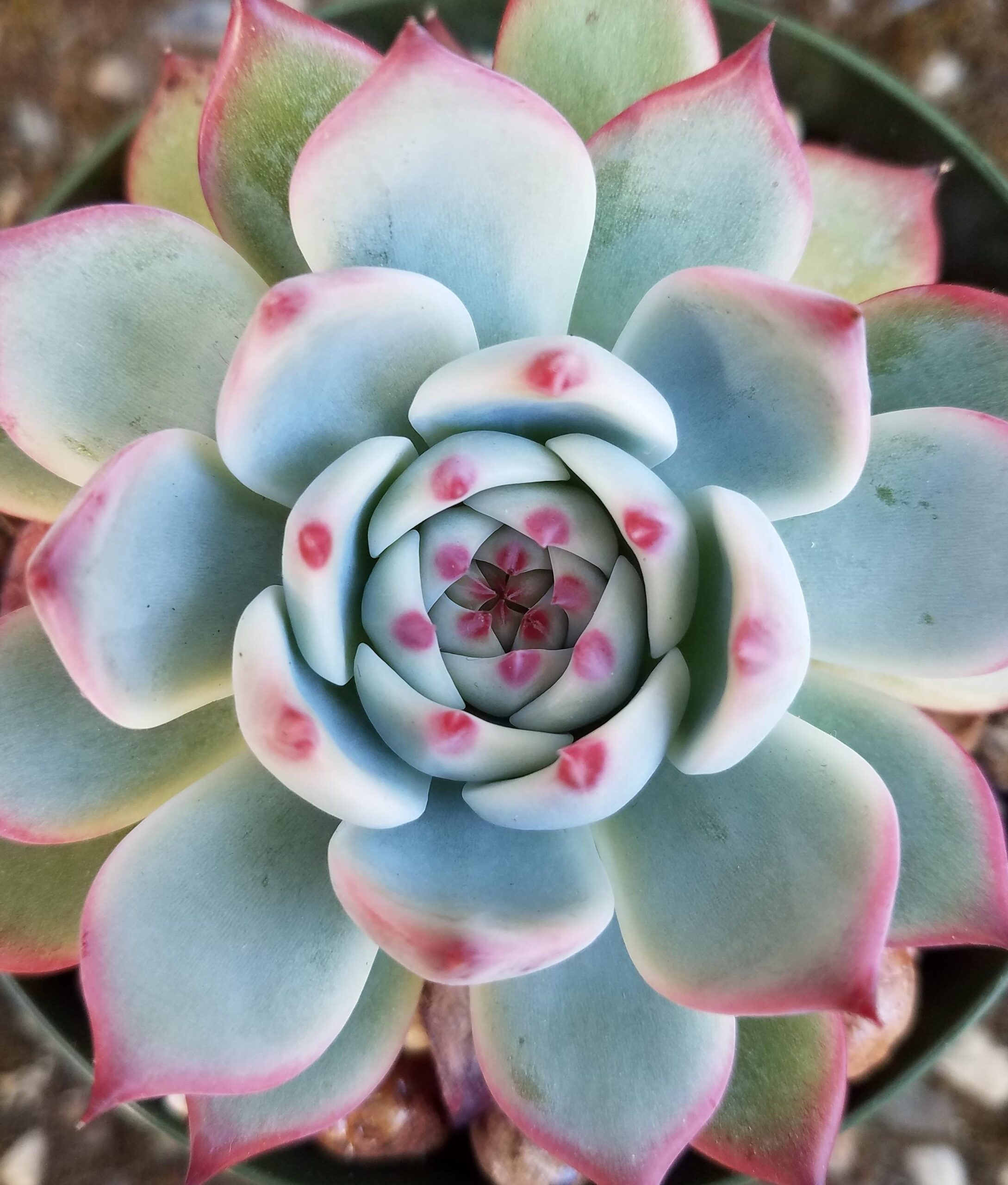 This beautiful Mexican endemic succulent has fleshy grey leaves tipped with crimson. It forms a solitary rosette some 20cm across. The bell shaped pink flowers are held on 20cm tall carmine coloured stems. Frost hardy down to -4C. E. colorata is best grown in full sun and kept moist but not wet.