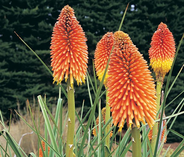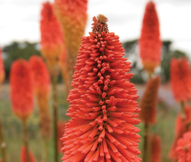 The giant of the race and one of Lambley’s favourite pokers.  It produces huge, football sized heads of clear orange red torches on 200cm tall stems during summer. It makes large mounds of dark green arching leaves a metre across and the same tall. A superb plant and rarely offered.