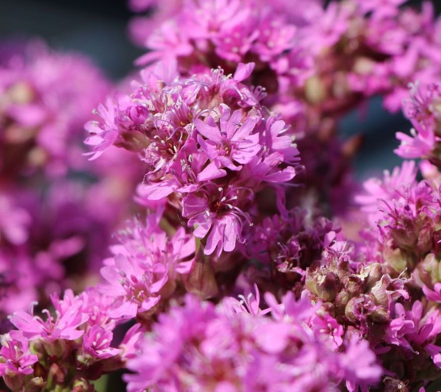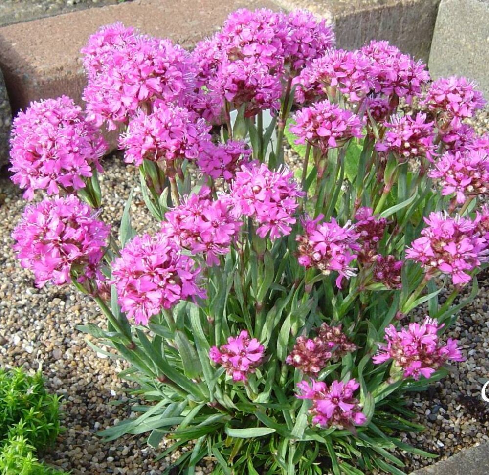 Small and refined evergreen tufts of glossy deep green grass-like leaves produce during spring and into early summer 10cm tall stems topped by clusters of flowers, fuschia with rose overtones. A delight when grown in a pot and a joy when grown in the rock garden. Happy in any sunny or lightly shaded spot which is kept moist during dry periods.