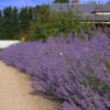 This very neat and tidy plant makes a wonderful border; it is especially beautiful when grown in front of roses. It has an obliging growth habit as new flower stems arch over and hide the older spent flower stems so that it doesn’t need dead heading during the growing season. Tolerant of drought, although it looks better for an occasional watering during dry periods, and beautiful in foliage just about the year round if cut back hard during late autumn. The flowers are an ethereal soft blue-mauve colour. 40cm tall by 60cm across.