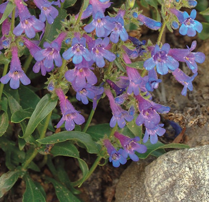 This beautiful little penstemon carries its blue-purple flowers on 25cm tall stems over basal clumps of glossy green leaves. A native of the mountains of Colorado and Wyoming where it grows on dry rocky slopes some 1600 to 3000 metres in altitude. Best grown in a sunny well drained spot.