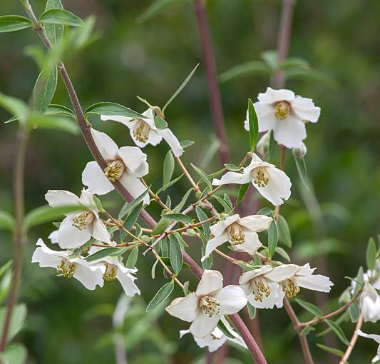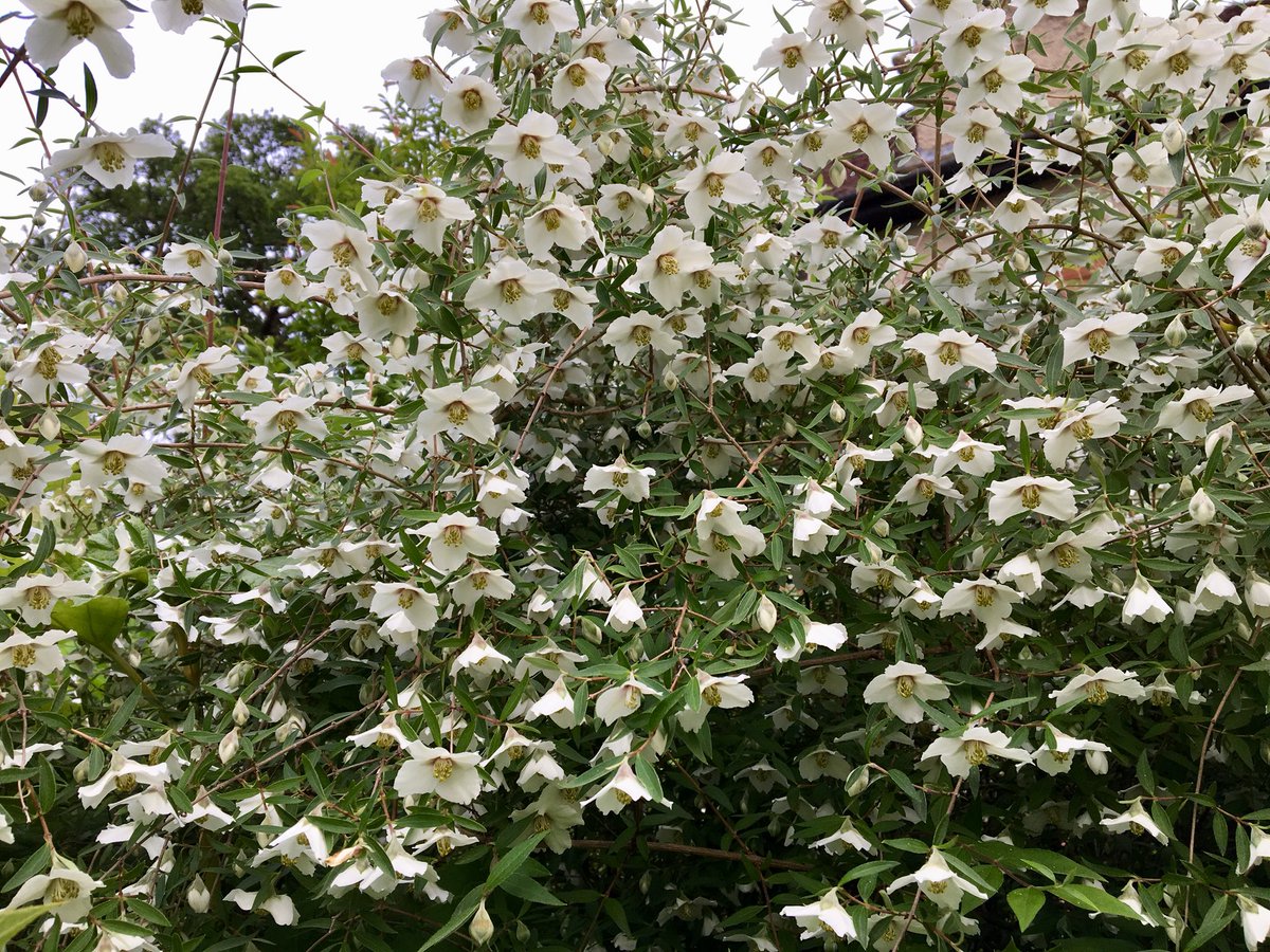 To our mind the most beautiful and the most highly scented of all the Philadelphus, ‘Sweet Clare’ will make a height of 1.5-2 metres with a spread of 2 metres after 5-8 years. A vigorous deciduous shrub with arching branches clothed in slender, silver-backed green leaves and, from early summer, carrying pendent, highly scented white flowers with a crimson blotch at the base of each petal. Plant this deciduous shrub near an entrance or pathway, so you can get a whiff of the perfumed blooms each time you pass. It makes a fine specimen feature plant for the shrub border, the edge of a lightly shaded woodland, or allow the weeping branches to spill over a wall.