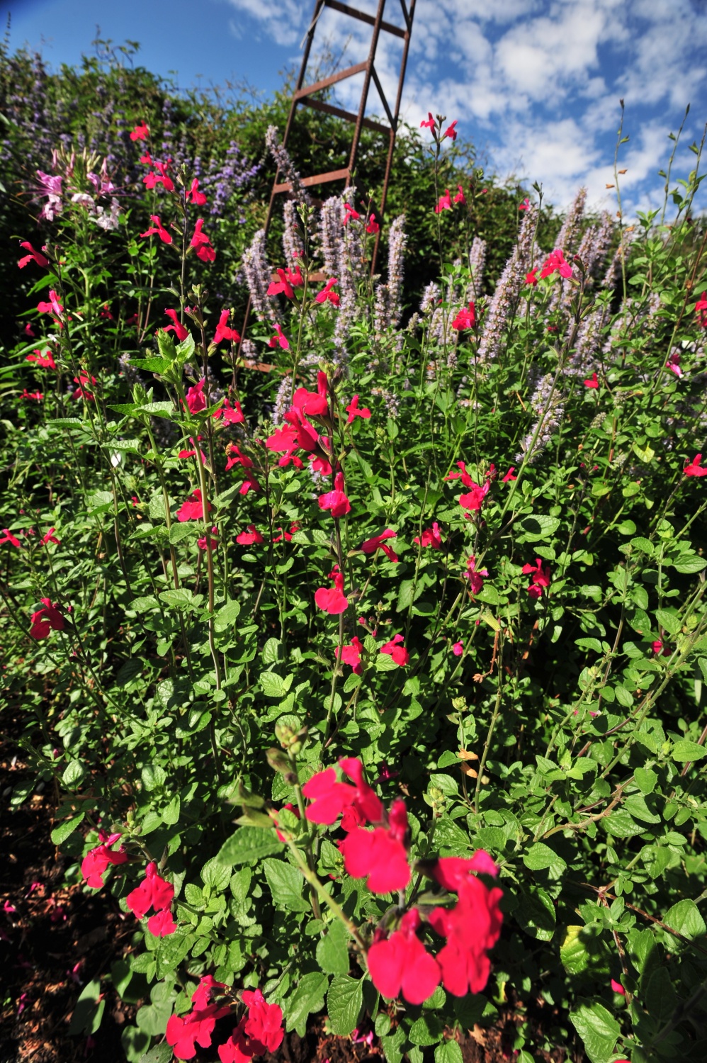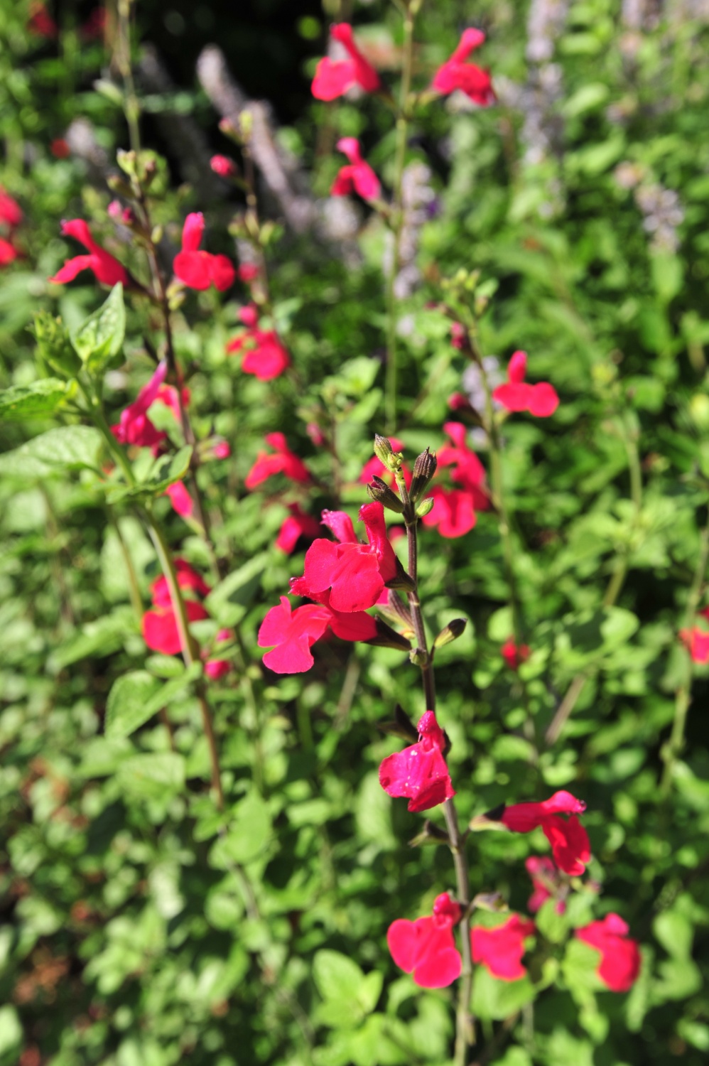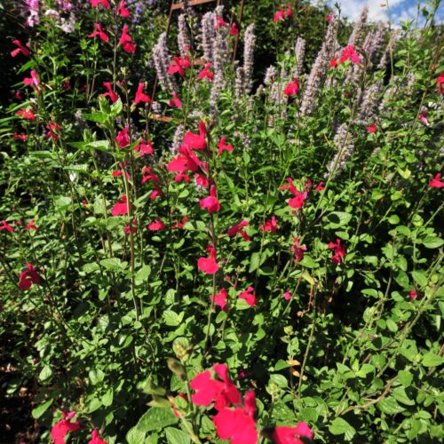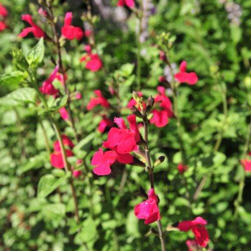 The horticultural world is the richer for the sterling work that Lyndi Garnett has done in promoting the genus, Salvia. She is always generous with her knowledge. This beautiful Salvia was raised by Lyndi who gave Lambley a plant to trial a few years or so ago. ‘Crimson Belle’ is a seedling of the superb Salvia ‘Penny’s Smile’. It carries beautiful crimson flowers from quite early in the spring until late autumn. In our garden it has grown 120cm tall by as much across. Bees love the flowers although as the flower’s lower lip is pressed tightly against the flower’s upper lip both honeybees and native blue banded bee pierce the corolla tube near its base to access the nectar.