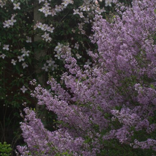 This native of the province of Gansu in northern China was “…one of the first oriental lilacs to travel. Crossed somewhere on the way, it found its way as the hybrid S. X persica into Persia long ago”, writes Fr. John Fiala in his fine monograph Lilacs: The Genus Syringa. At Lambley it has made a shrub 2 metres tall by 2 metres in ten years. Every September it carries 50cm long spikes of lavender pink, fragrant flowers. Drought tolerant and doesn’t suffer from the disfiguring leaf problem that an ordinary lilac “is heir to.”