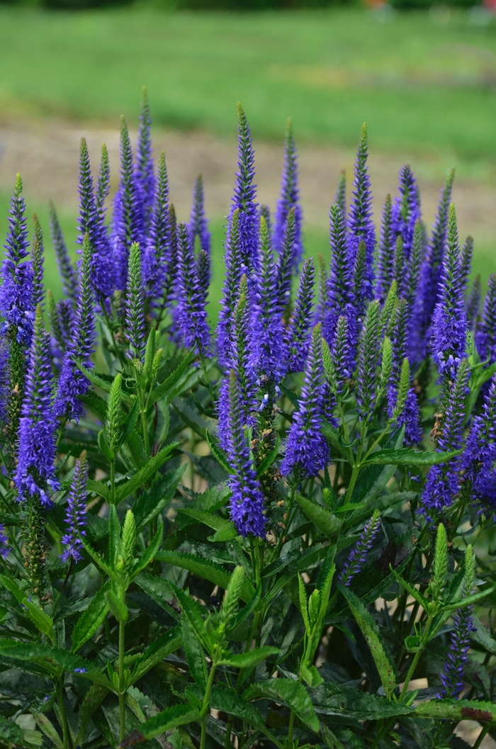 This terrific new variety of Veronica carries long, narrow, bottle brush like heads of deep Oxford blue flowers on 40cm tall stems. It will repeat flowering if spent stems are cut down. Best grown in good garden soil in full sun. Water occasionally during dry weather. 60cm tall by 30cm width. This fine plant will give strong vertical notes at the front of the border or rock garden.